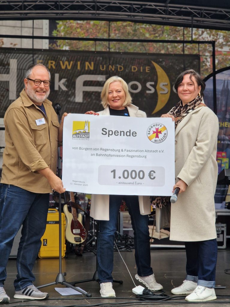 Was für eine Freude! Die Diözesanvorsitzende des Katholischen Deutschen Frauenbunds Martha Bauer überreichte Claudia Fritsch, der Vorsitzenden von IN VIA Regensburg im Beisein weiterer Vorstandsdamen beider Verbände einen Scheck in Höhe von 7500 € für den IN VIA Frauentreff „Ellen…